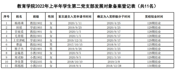 根据学校《关于做好2022年上半年发展对象确定和备案工作的通知》文件要求,学生党支部广泛征求班级群众座谈意见、班主任意见、辅导员意见,学院活动参与情况,威廉希尔亚洲公司杨珞璘等11名入党积极分子初步符合组织发展要求,经学生支部讨论推荐,报学院党委备案审批同意,具体名单如下: