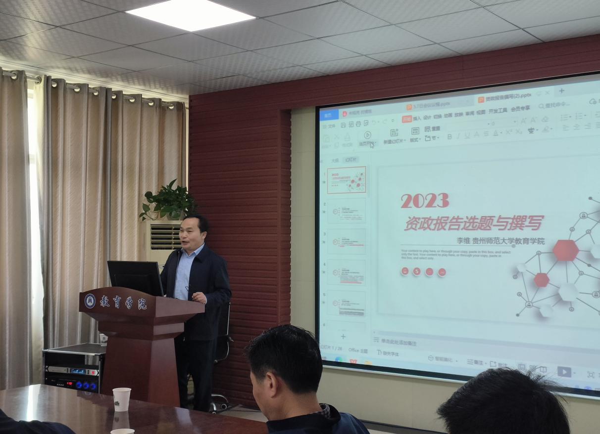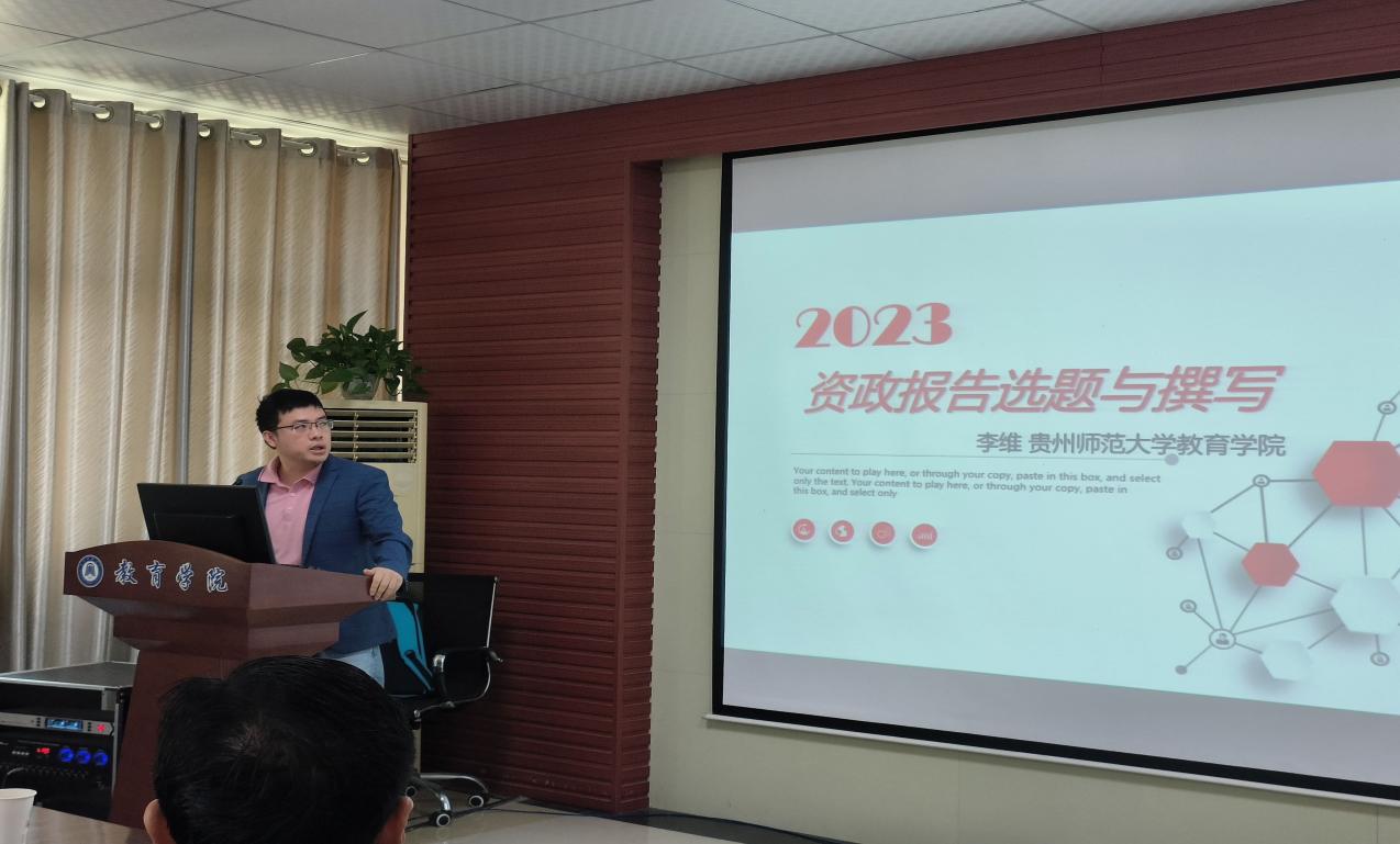 上午的论坛由陈院长主持,他首先代表全院师生向各位学者的到来表示衷心的欢迎和感谢。随后,贵州师范大学威廉希尔亚洲公司副教授、厦门大学教育学博士后李维老师做了题为《强化问题导向,写好资政报告》的分享,在报告中,他分别从资政报告的选题、分类、结构格式、提交渠道等方面进行了深入展开,强调了资政报告的针对性、真实性和时效性。在互动环节中,陈院长和韦耀阳老师从自身科研实践中提出相应问题,与李维老师进行了一场深刻的学术探讨。
