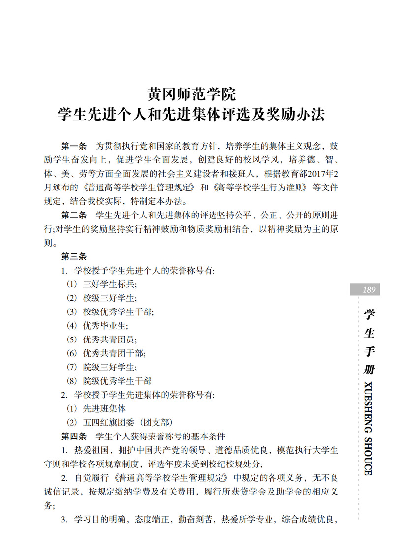 黄冈师范学院学生先进个人和先进集体评选及奖励办法