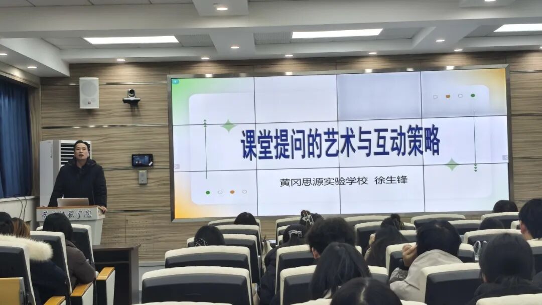 讲座开始时,徐生锋老师以课堂提问的要求与互动策略为主题展开分享,特别强调:“学生提问是对老师最好的奖励”,点明了课堂提问在师生互动中的重要价值。