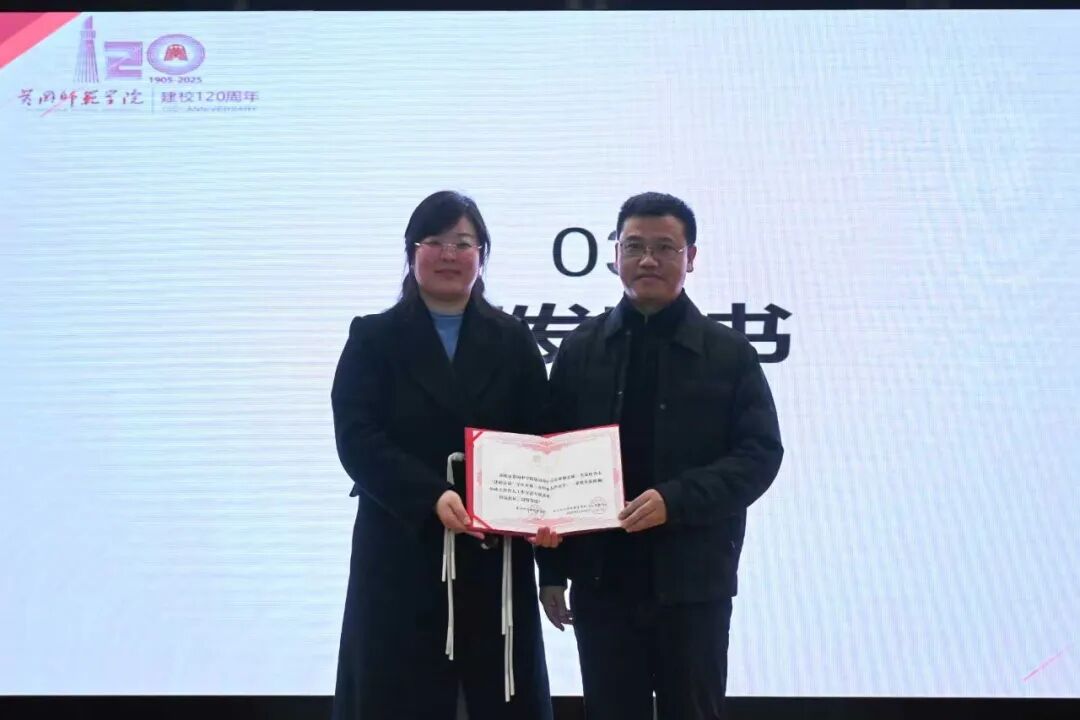 开场介绍后,一多书院院长助理沈胜林代表书院向俎姗姗老师颁发聘书。沈胜林表示,俎老师作为黄冈中学附属初级中学的优秀年级主任,其班主任育人经验是一线教育实践的宝贵财富,这份聘书既是对本次分享的感谢,更是书院链接优质基础教育资源、助力优师生成长的重要纽带。俎姗姗老师接过聘书时提到,期待以此次交流为起点,为优师生们提供更多接地气的育人指导,共同深耕教育事业。