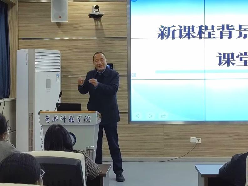 作为主讲嘉宾的甘喜武老师,无疑为此次活动增添了一抹亮色。甘院长在教育领域有着丰富的经验和深厚的学术造诣,此次他以“新课程背景下课堂教学目标的研制”为题,聚焦新课题背景下传统教学难以明确讲述的问题,分析其七大缺陷,并提出从课程标准到教学目标的四步研制路径,实现精准教学。
