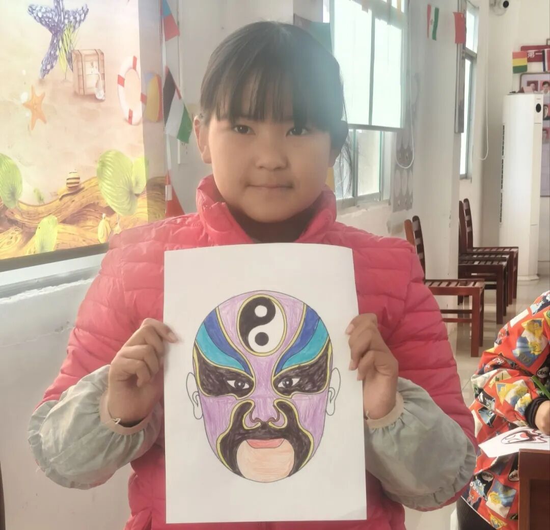 在最后的"表情脸谱秀"上,孩子们踊跃上台展示作品,用稚嫩而自信的声音介绍创作理念。一张张色彩鲜明、创意纷呈的脸谱凝聚着孩子们对传统文化的理解:有的用红色表达内心的勇敢与热情,有的用黑色展现认真与坚毅,还有的通过色彩组合传递复杂的情感体验。热烈的掌声回荡在“希望书屋”内,传统文化的种子也悄然在孩子们心中生根发芽。