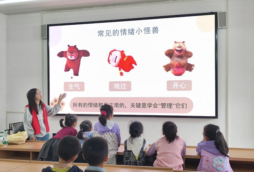 活动从一段生动有趣的情绪视频开始,迅速吸引了孩子们的注意力。志愿者结合精心制作的PPT,为孩子们讲解不同情绪的特点与表达方式,引导他们正视内心感受。从“开心”时的笑容,到“难过”时的沉默,每一种情绪都被赋予色彩与形状,让孩子们在视觉与情感的双重体验中,学会识别并接纳自己的情绪变化。